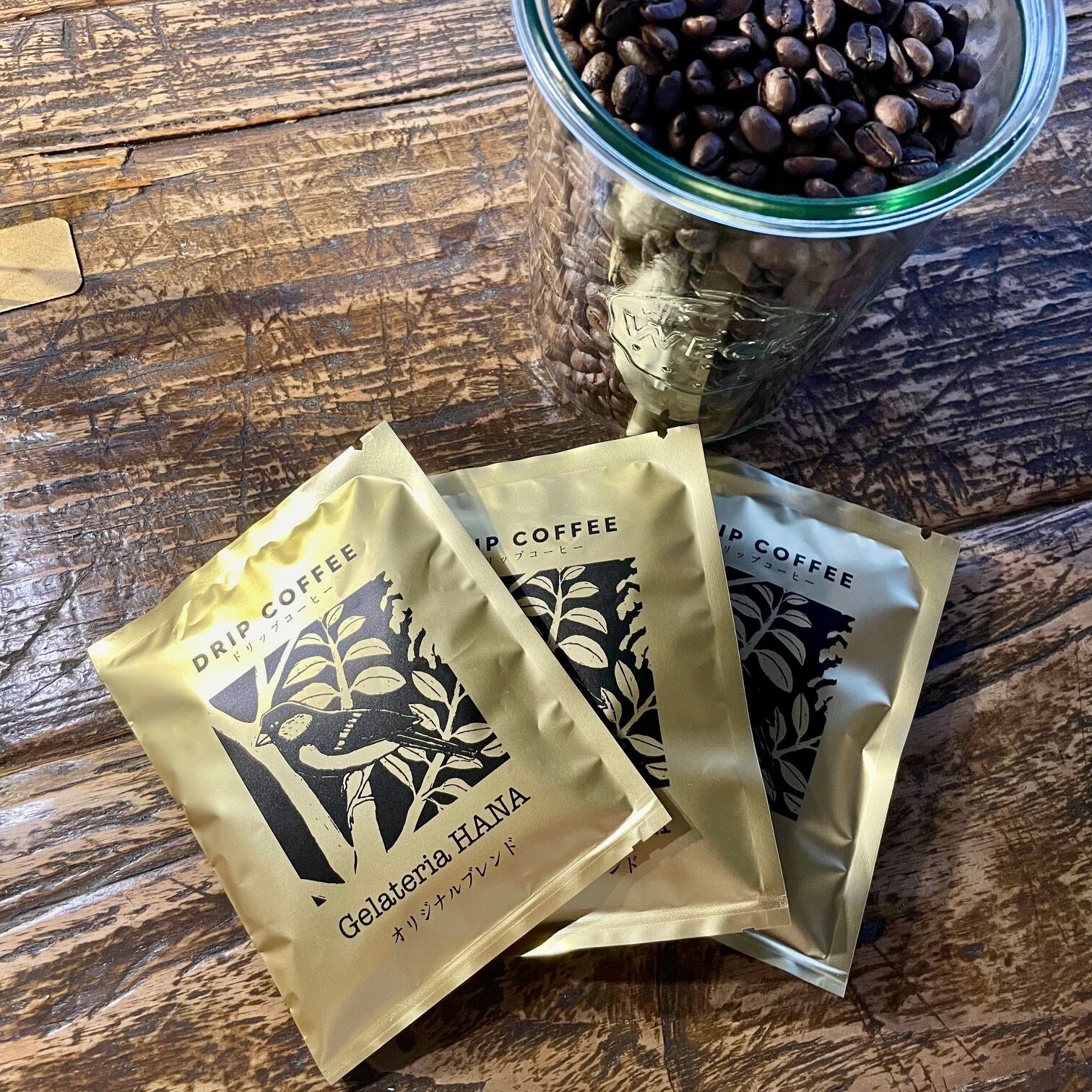 ※こちらの商品はジェラート12個、とHANAオリジナルブレンドコーヒーのドリップバッグ1個入りの個包装が3パック付いたセットです。